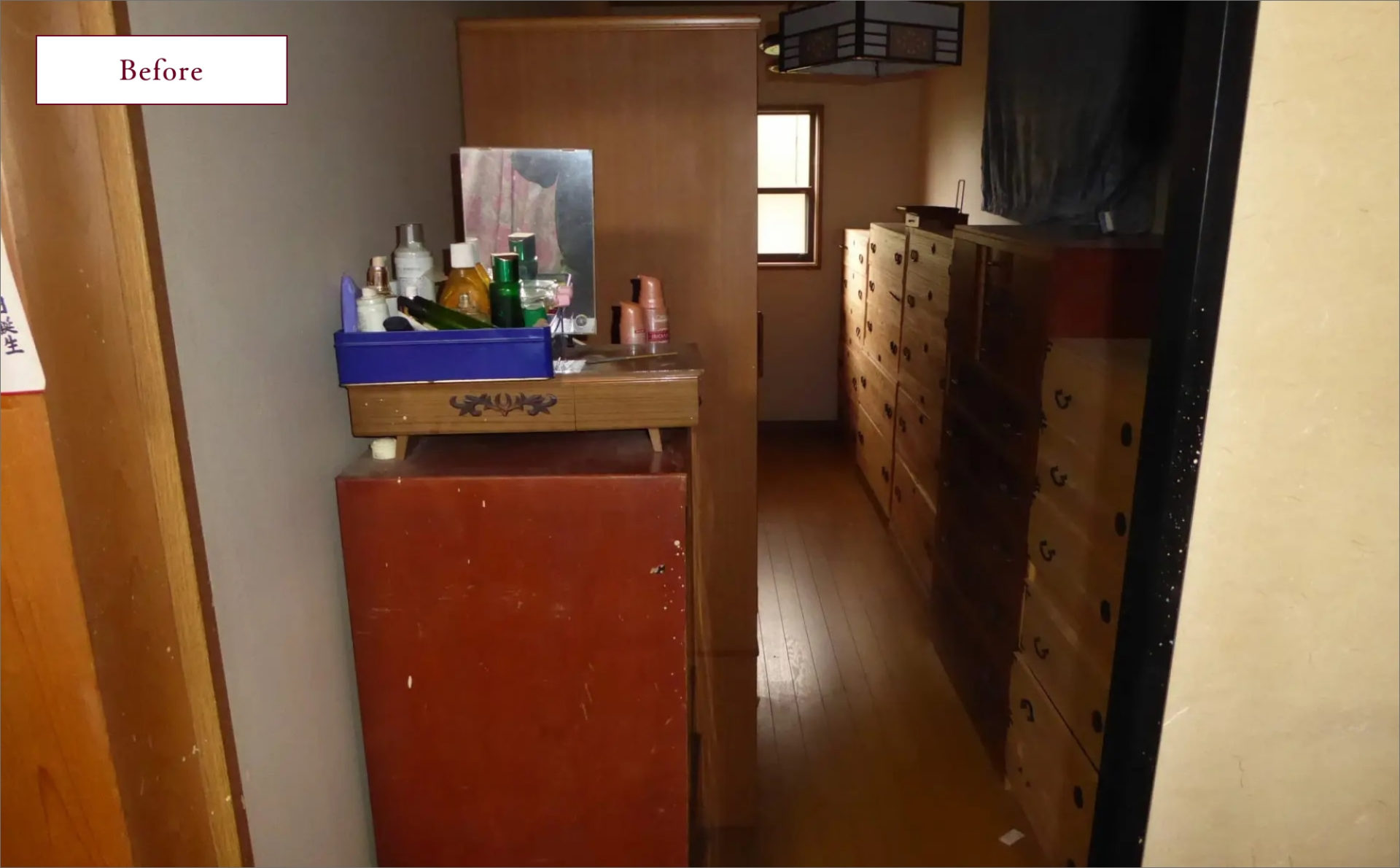 寝室の奥にあった納戸はウォークインクローゼットに、洗面脱衣室にもパウダーコーナーをつくり、玄関に全身鏡を取り付けたことで、以前より身支度が楽になり、とても暮らしやすくなったように思います。