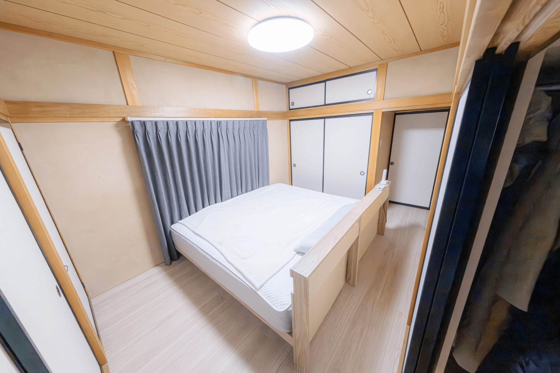 畳からフローリングに張り替えた寝室も、壁や天井はそのままに、昔の面影を感じながら就寝できるようにしています。